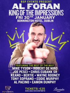 Catch Al Foran, the King of Impressions, live and hilarious at Bonnington Dublin Hotel!